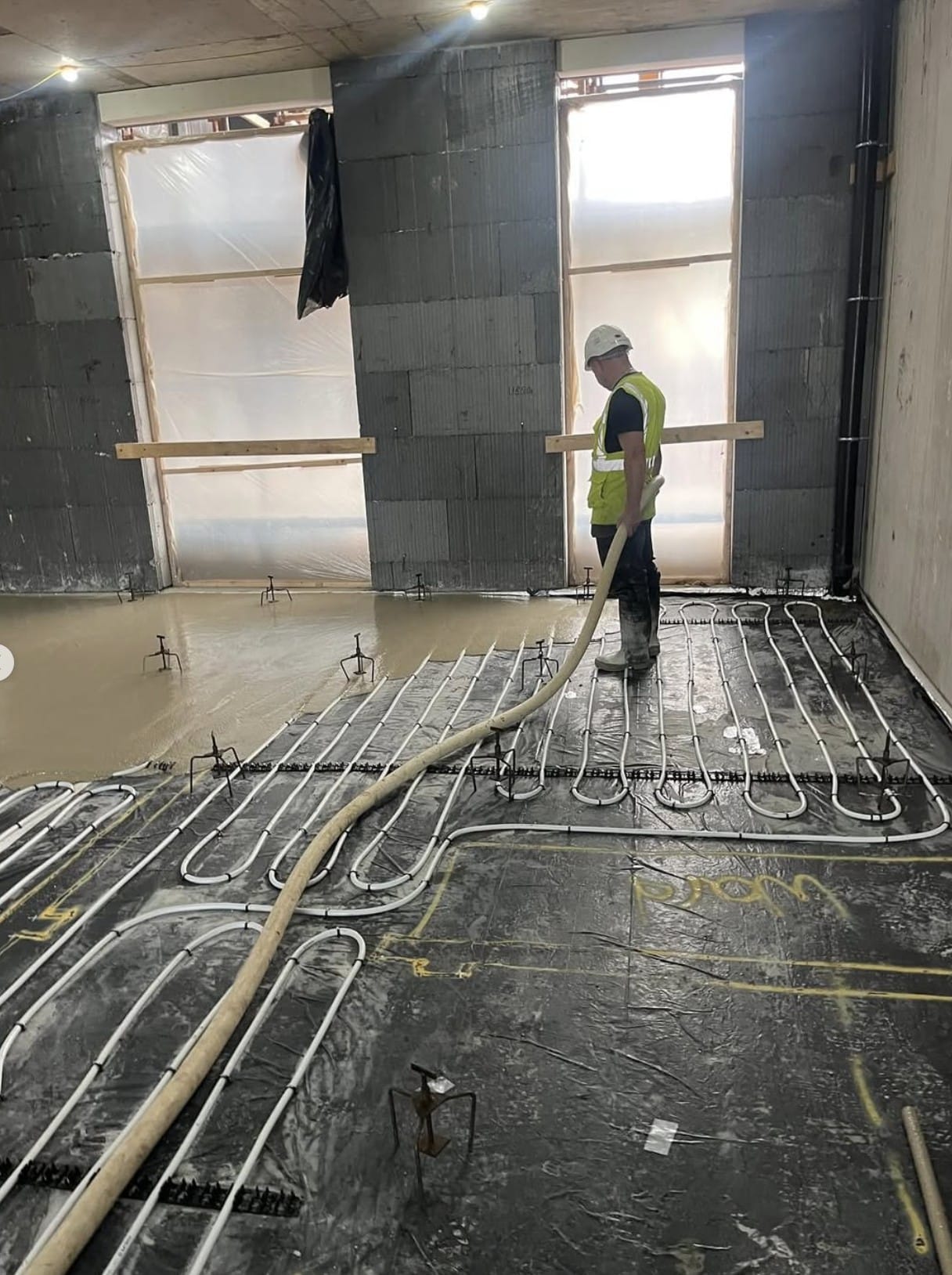 Floor Screed: 280 Alpha Hemi Hydrate liquid screed designed for under floor heating supplied and installed by @Fast Floor Screed Ltd"